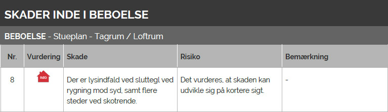 “K3 – åbne fuger i rygningen med risiko for skade.”